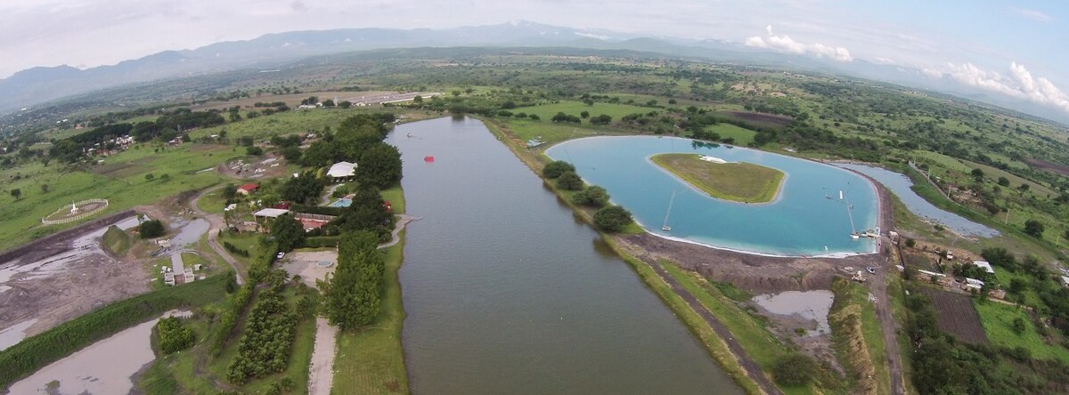 Come to Acua Ski Action Park in Xoxocotla, Mexico. A private lake with always perfect water conditions. We teach waterski and wakeboarding, as well as host tournaments. We have a boat lake and a Rixen cable system. Stay on site and enjoy superb breakfasts and outstanding lunches. Enjoy excursions after skiing and riding, followed by exquisite dinners at historic haciendas. World class coaching combined with skiing and riding on a perfect site makes this your best on-the-water experience.