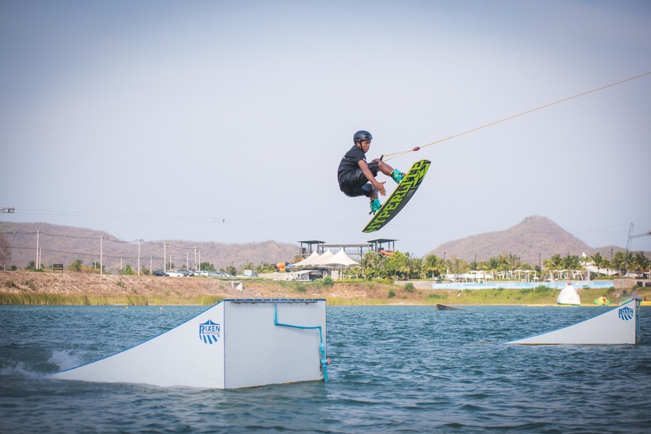 The Black Mountain Wakeboard Park is one of only six of its kind in Thailand. A cable system pulls riders at 30 kilometers an hour and can accommodate up to eight wakeboarders at a time.