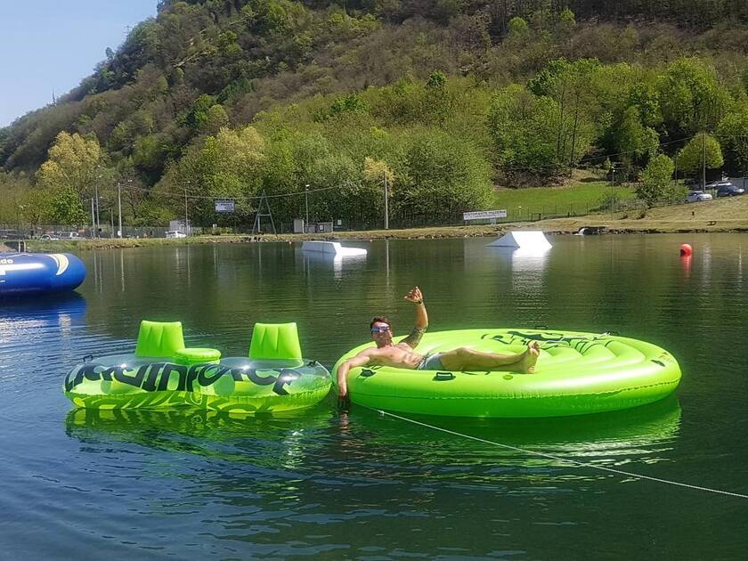 Getting pulled by cable creates no waves so you can try wakeboarding or water skiing in a safe, fun and economical way. Located just minutes from the centre of Colico amid green nature. Experienced kiters, in the absence of wind can train using ollie boxes and spin kickers for simulated excitement.