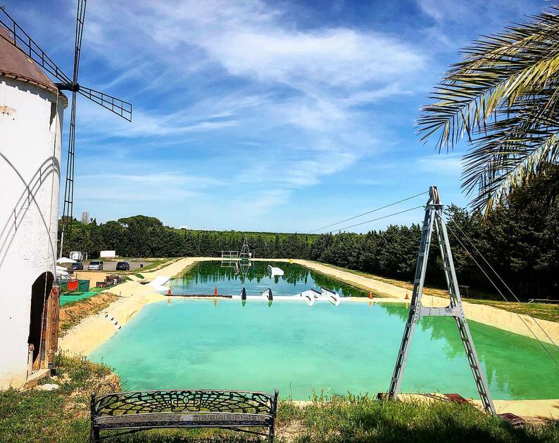 Built from a true passion for the sport of wakeboarding, the El Rancho park is simple, yet extremely fun. Maybe itβs the combination of good people and a solid cable setup that lends itself to such good vibes. With 2 uprails that join the two pools, the park is one of the most technical in Spain, which brings really great riders to the scene. The park is 160 meters long and 60 meters wide at a depth of 1.5 meters. Its also got a great area for camping for those who want to ride late and ride again early in the am. The perfect dawn patrol setup.