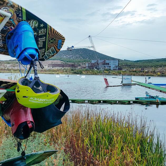 The DaWinchi wake park team presents to your attention a 155 meter long track with two reversible winches . A number of figures are installed on one of the tracks: two springboards, a double railing and a box railing, each 18 meters long. The figures presented in the park will allow you to learn how to do various high-amplitude jumps from water and springboards, and spectacular tricks.