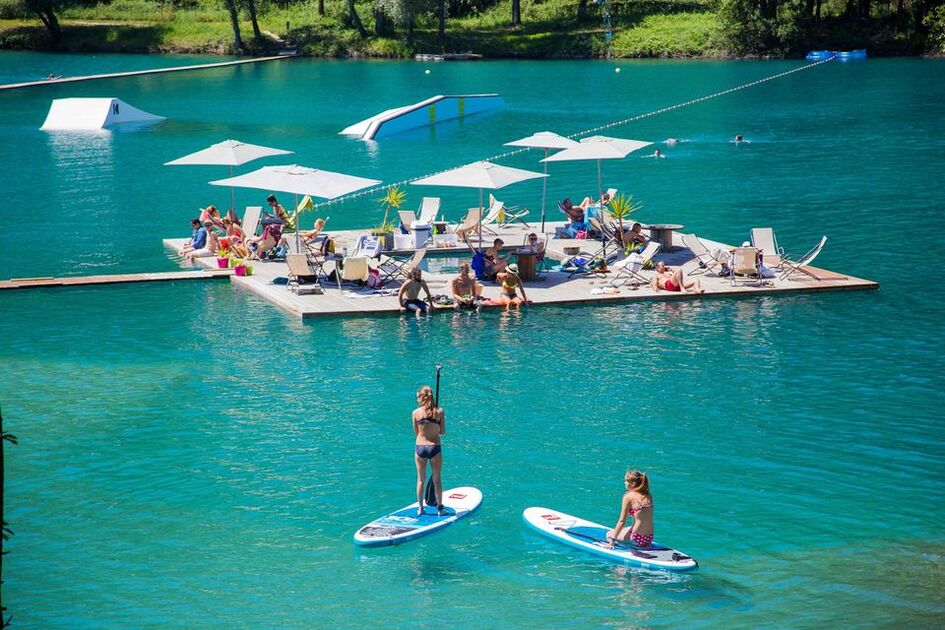 A new generation leisure center built around 2 nautical tk (wakeboard and ski) and inflatable aquatic games, waterjump, floating accommodation, zip lines, paddle, floating islands all in a sumptuous setting.